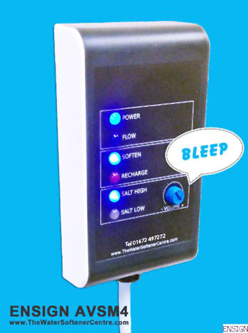 Advanced remote salt monitor and handy brine tank LED lightincluded with all Ensign C-AVSM4 Water Softeners